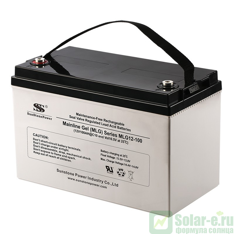Гелевый тяговый аккумулятор SunStonePower MLG 100Ач 12В серии MLG это тяговый аккумулятор глубокого разряда ( deep cycle ) используемый в качестве источника питания в системах как автономного так и резервного электроснабжения, а так же лодочных моторов и любых других электродвигателей с напряжением 12 Вольт. Данный аккумулятор зарекомендовал себя как надежный аккумулятор для систем резервного электроснабжения и для работы в системах электропитания на солнечных батареях. Компания Технолайн ( e-solarpower.ru ) использует данные аккумуляторы с 2012 года, их безотказная работа стала основной причиной по которой мы рекомендуем именно эти аккумуляторы.В гелевых аккумуляторах в качестве сепаратора между свинцовыми пластинами применяется силикагель, которым заливается пространство между пластинами в процессе производства. Силикагель после застывания представляет собой твердое вещество с огромным количеством пор, в которых удерживается электролит. Благодаря тому, что силикагель полностью занимает пространство между пластинами, в гелевых аккумуляторных батареях практически невозможно осыпание свинцовых пластин и как следствие, закорачивание и выход из строя.