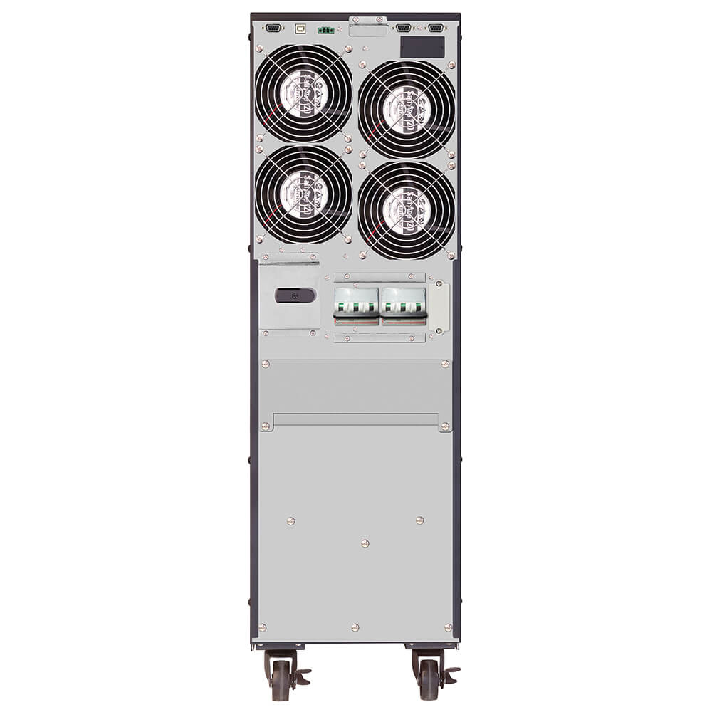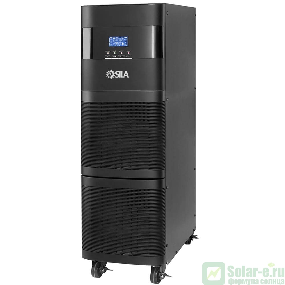 ИБП SILA G 20K 3/3 ( 3-фазы ) с выходной мощностью 20 000кВа (18 000Вт) это трех фазный источник бесперебойного питания с двойным преобразованием энергии предназначенный для бесперебойного питания оборудования с напряжением 380В и высокой плотностью мощности: серверов, сетей голосовой связи и передачи данных, медицинских лабораторий и небольших промышленных установок. Выходная мощность 18 000 Вт и наличие встроенных аккумуляторов позволит устройству продолжать работу в течении 16-ти минут при неполадках электросети: перебоев напряжения, помехах, коротких замыканиях. Пользователь имеет возможность завершить работу системы, сохранив нужные данные и предотвратить поломку оборудования. Наличие USB и RS-232 портов позволит Вам подключить устройство к персональному компьютеру и установить оптимальные параметры для его эффективной работы. А наличие SNMP модуля ( устанавливается по требованию заказчика ) даст возможность удаленного мониторинга и администрирования.Информация об операциях устройства отображается на ЖК-экране.